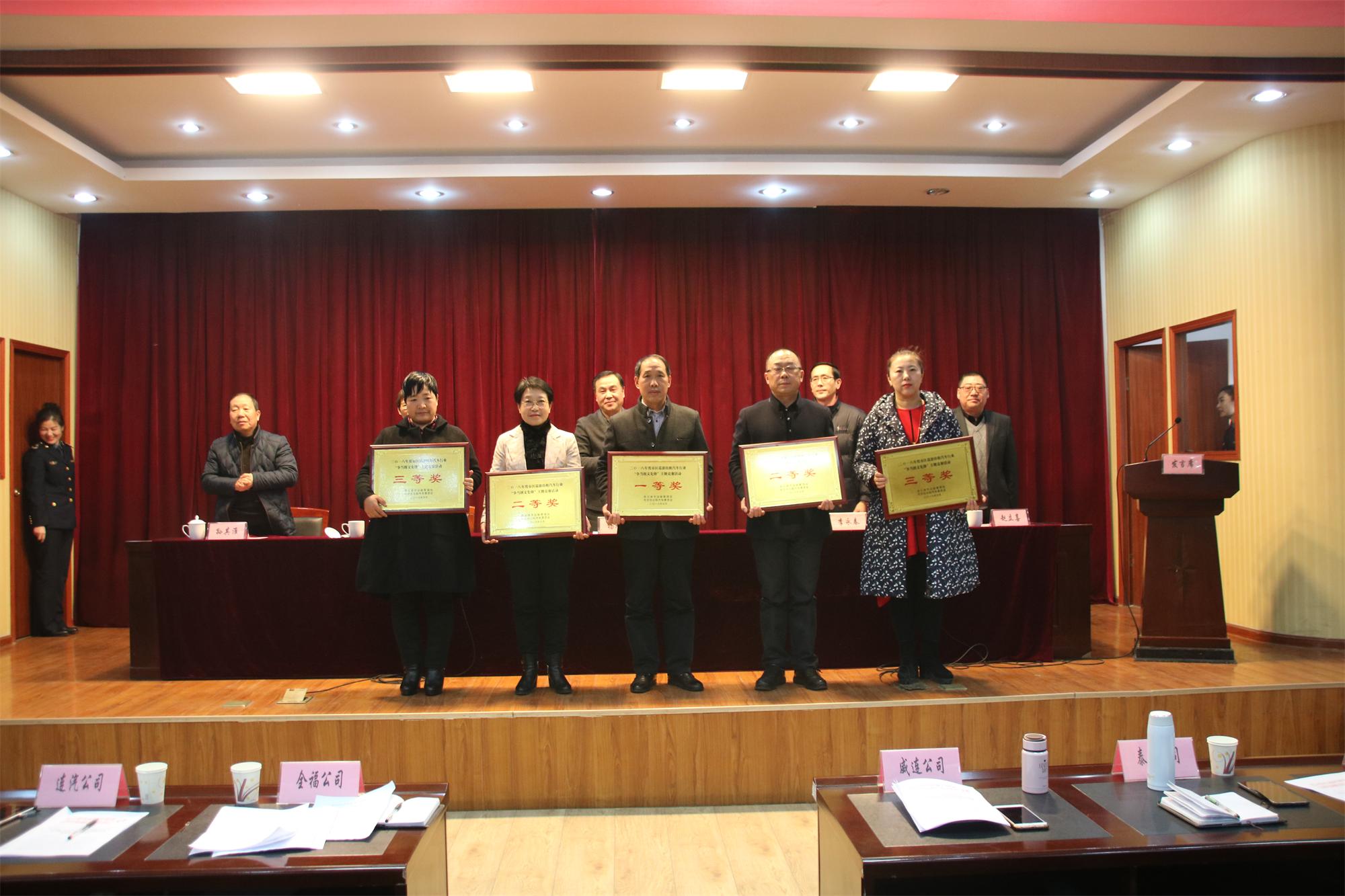 “爭當(dāng)創(chuàng)文先鋒”文明服務(wù)主題競賽活動總結(jié)表彰會,市交通運輸局黨委委員、副調(diào)研員楊旭東、市運管處黨委書記李永春、副處長李敏、汽服公司副總經(jīng)理趙立喜、出租行業(yè)協(xié)會會長孫其準(zhǔn)等領(lǐng)導(dǎo)為獲獎的市區(qū)五家出租公司及十位優(yōu)秀出租車駕駛員頒發(fā)了證書。全福公司榮獲“爭當(dāng)創(chuàng)文先鋒”主題競賽活動一等獎,駕駛員章文彩、李鴻祥、江希勇獲得“爭當(dāng)創(chuàng)文先鋒”優(yōu)秀駕駛員殊榮。