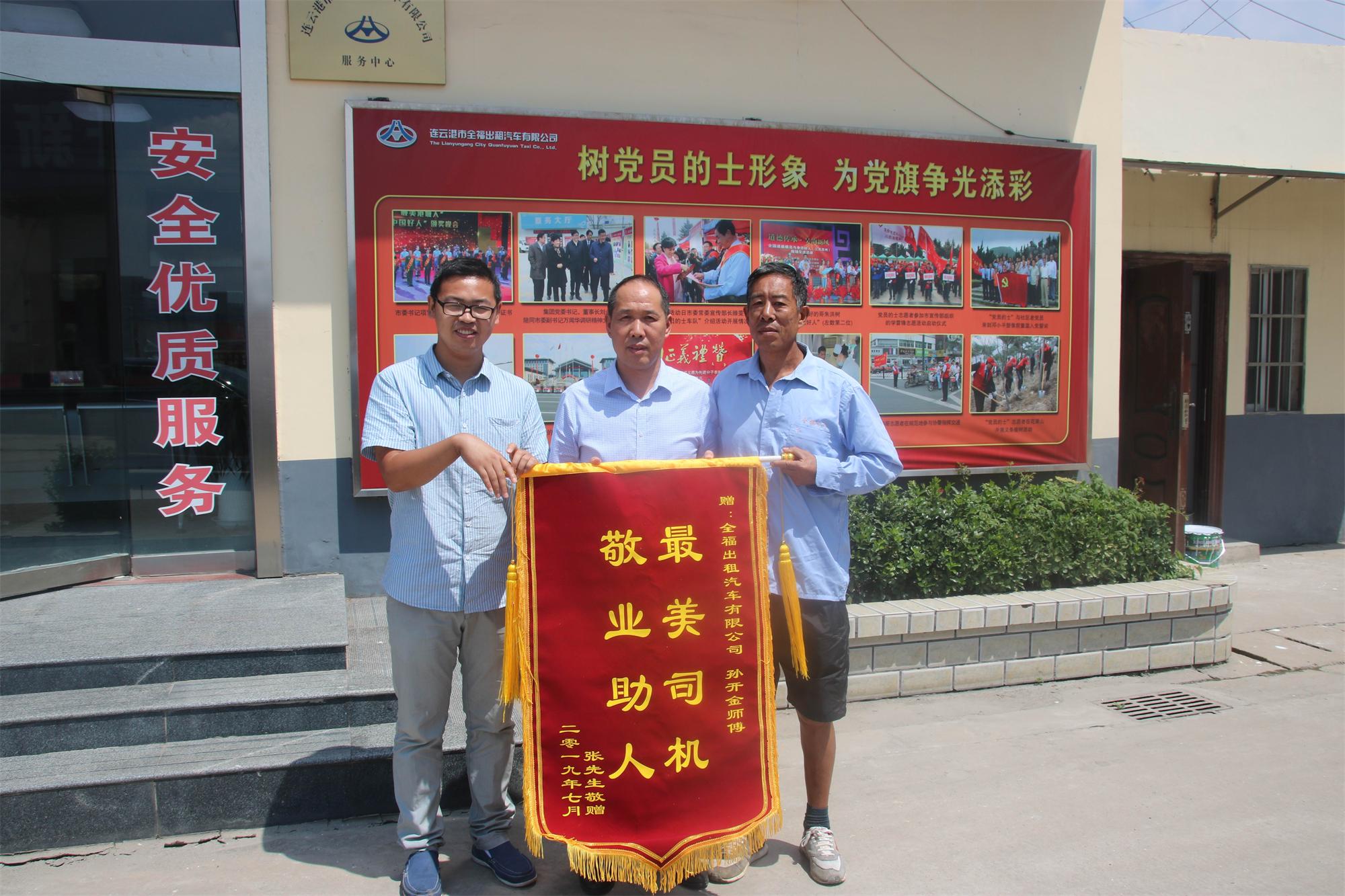 敬業(yè)助人”錦旗送到了蘇G53992孫開(kāi)金師傅的手中……