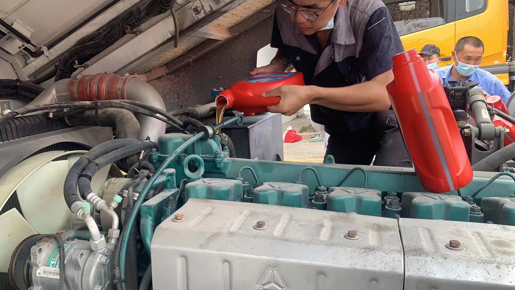 由于此次服務都在室外,并且保養(yǎng)車輛全是特種車輛,工作的機修師傅們非常的辛苦。很多車輛還需要到車底進行潤滑、打黃油,一輛車保養(yǎng)服務完,衣服全都濕透了。盡管衣服濕了又干,干了又濕,但是他們還是堅守在自己的崗位上,用了兩天時間,共保養(yǎng)了消防車、皮卡車、叉車和運輸車等共計32臺次,保質保量地完成了此次上門服務。