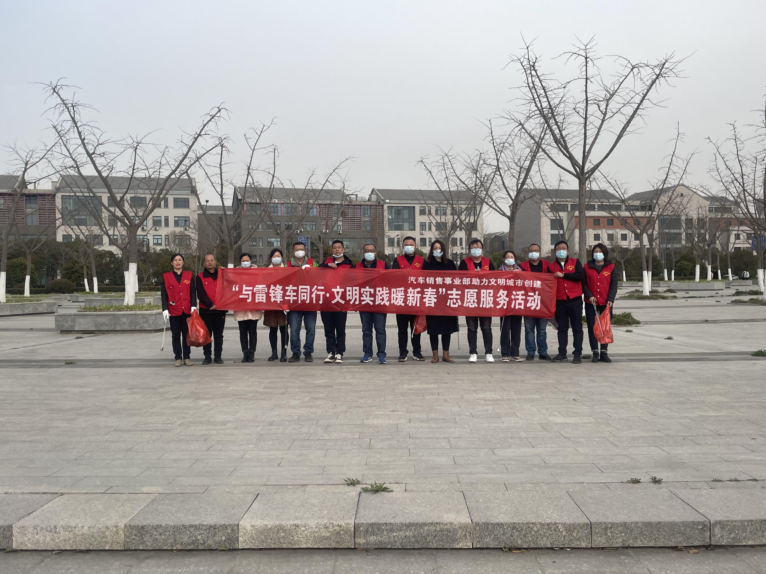 為進一步弘揚雷鋒精神,傳播志愿服務(wù)理念,3月15日,汽車銷售事業(yè)部組織開展“與雷鋒車同行•文明實踐暖心春”環(huán)保清潔志愿服務(wù)活動。事業(yè)部領(lǐng)導班子成員、黨員、青年職工等10余人參加了此次活動。