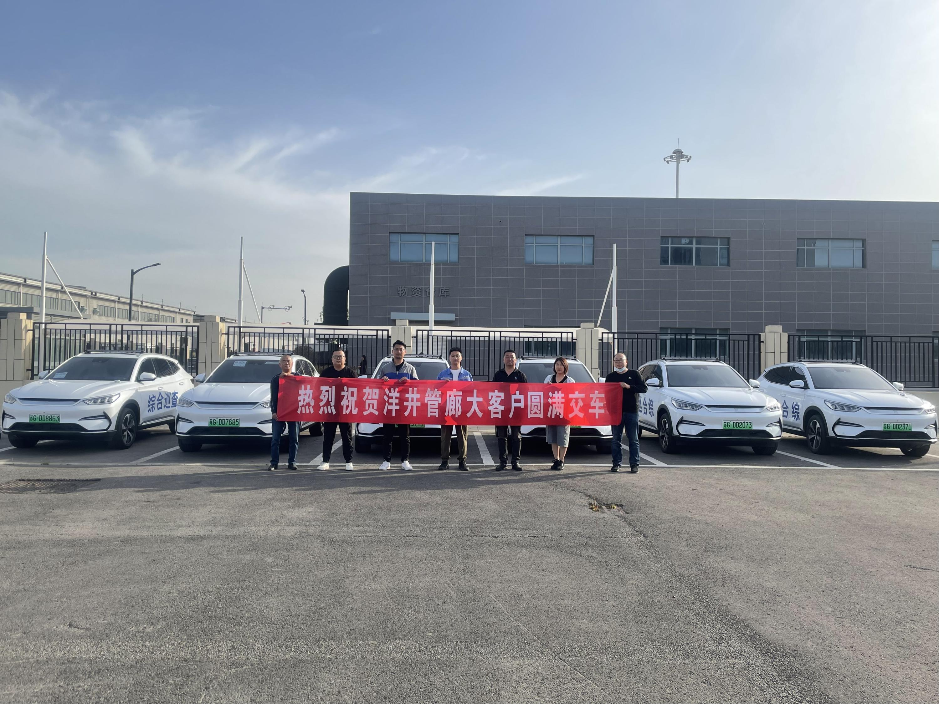 5月23日下午,汽車銷售事業(yè)部東汽銷售公司6名服務(wù)顧問將6輛新能源巡檢車(比亞迪宋PLUSEV行政版)送至市徐圩新區(qū)江蘇洋井公用管廊有限公司(以下簡稱:洋井管廊公司)并完成車輛交接儀式,為企業(yè)實現(xiàn)營收118萬。