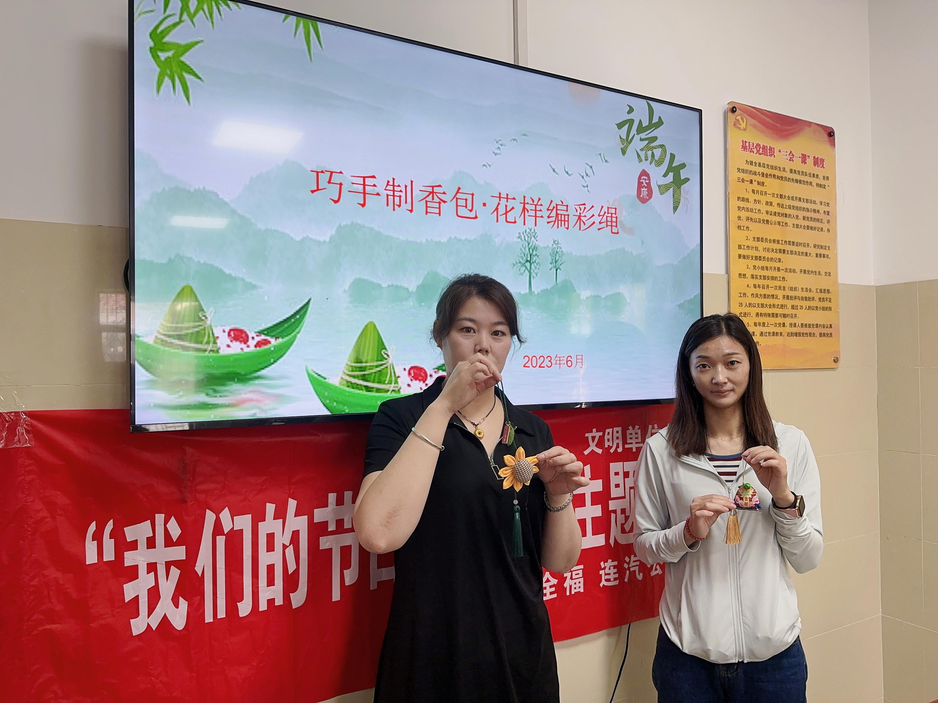 活動伊始,工作人員為大家準備好香包布料、艾草、絲線、掛飾等材料包,并介紹了端午節(jié)的由來、講述了傳統(tǒng)文化故事與端午習俗,讓大家充分了解端午的民俗文化。通過學習,干部職工感受到傳統(tǒng)文化魅力,增進了愛黨、愛國情感。在做香包過程中,干部職工有條不紊地開始制作香包。一雙雙巧手,穿針引線、填充香料、打結收尾……每個細節(jié)都格外認真,大家紛紛把自己最美好的端午祝?p入香包。清幽的艾草香氣彌漫開來,一個個各式香包逐步完成,每個人的臉上都洋溢著笑容。在編五彩繩活動中,干部職工通過結、繞、纏、編、抽等手法,細心編織,再綴上彩色小粽子掛飾,一條漂亮的端午節(jié)彩繩便完工了。歡樂祥和的氣氛洋溢在整個活動現(xiàn)場。