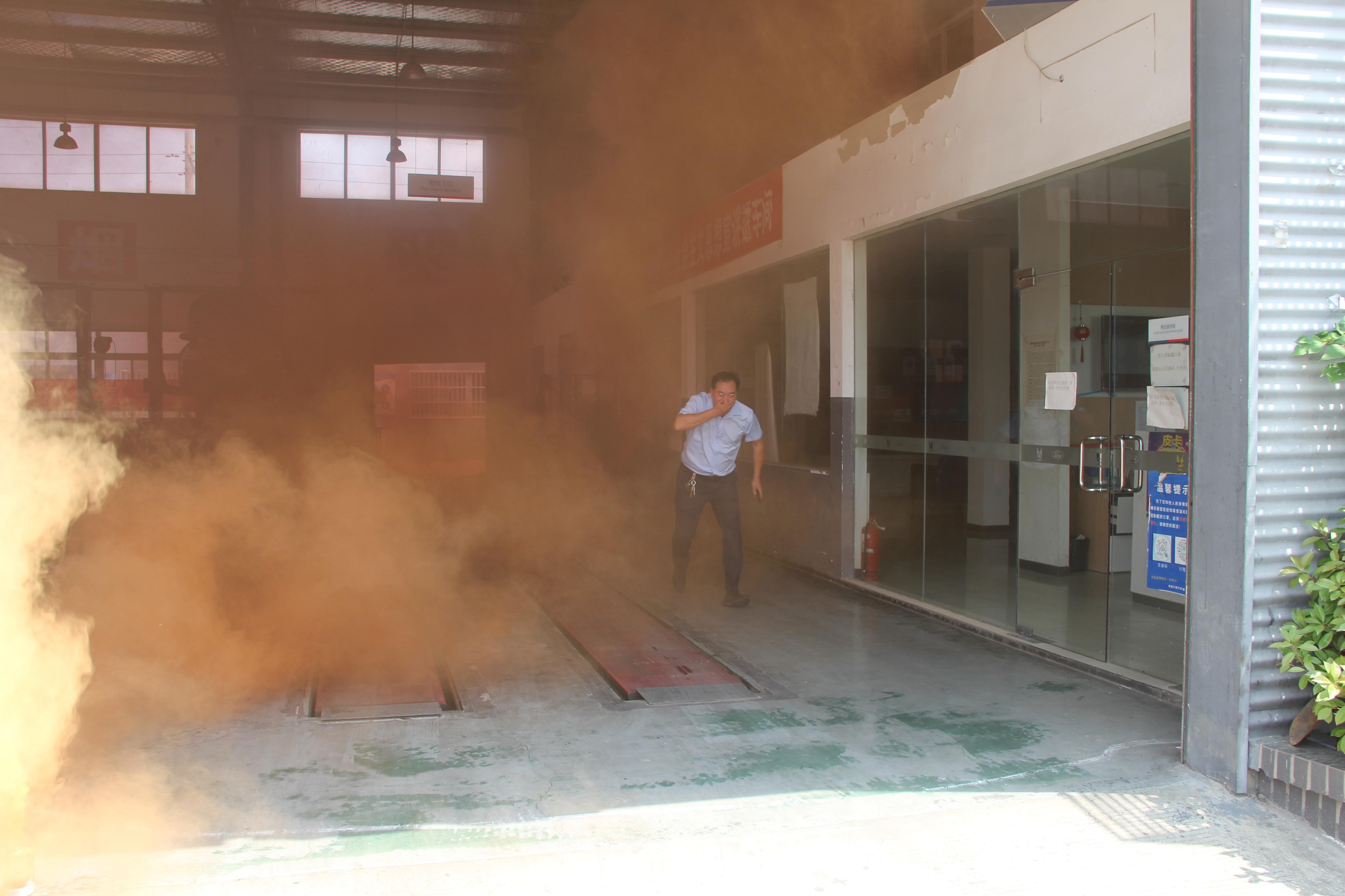 演練中,隨著一聲“演習(xí)開始”,安管人員立即對江鈴修理車間、客戶服務(wù)區(qū)域、辦公區(qū)域人員進(jìn)行緊急疏散并要求大家往車間出口處跑。當(dāng)看到有濃濃的煙霧后,大家迅速有序往出口處跑去,通過大家協(xié)調(diào)配合和快速反應(yīng),所有人員都緊急撤離到安全區(qū)域,活動演練達(dá)到了預(yù)期效果。