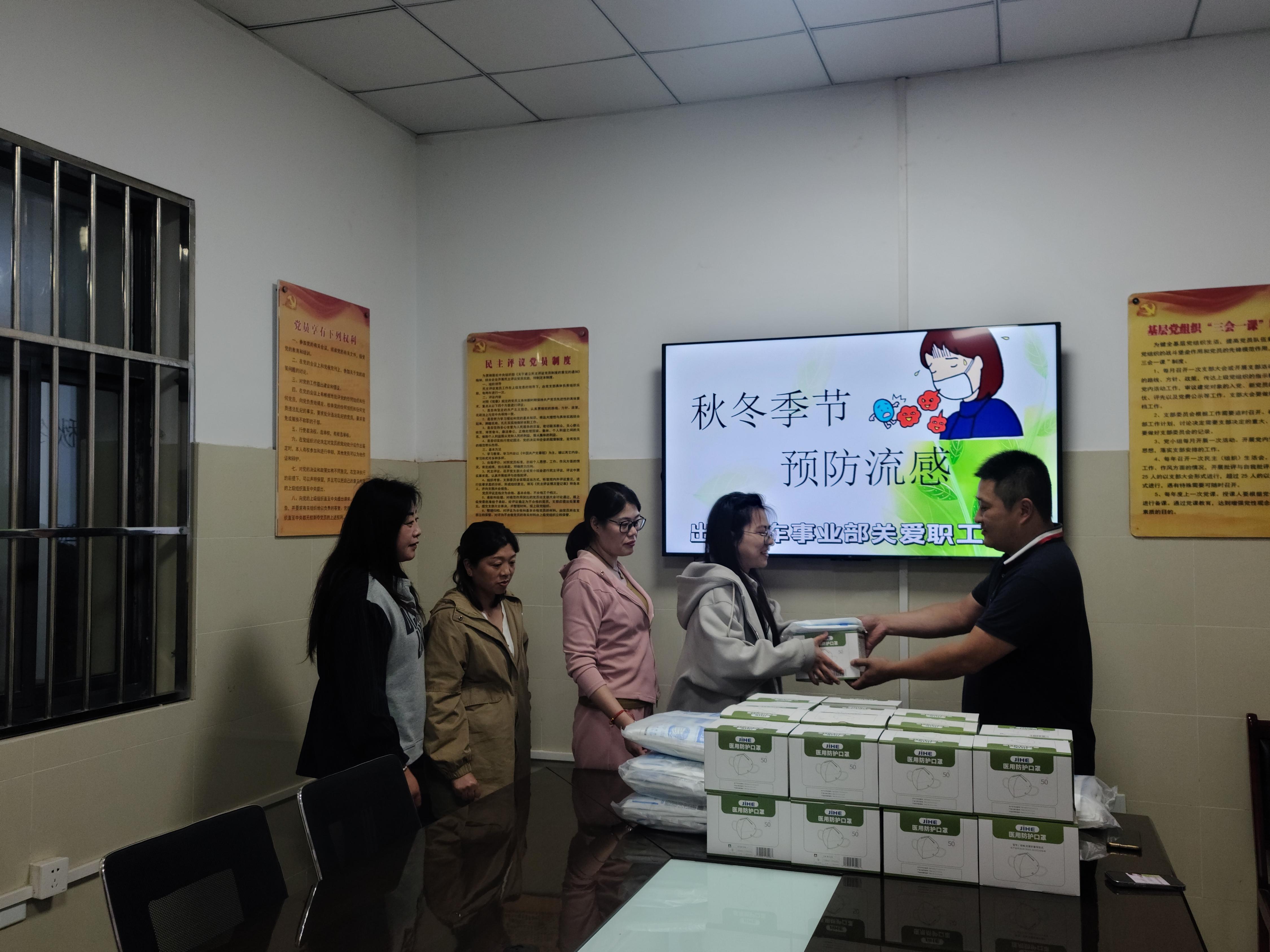 活動(dòng)現(xiàn)場(chǎng),公司通過發(fā)放口罩的方式向職工詳細(xì)講解“流感”的癥狀、傳播途徑及防治方法等。用“小口罩”傳遞“大溫暖”,提醒職工們做好本職工作的同時(shí)要注意自身防護(hù),勞逸結(jié)合。
