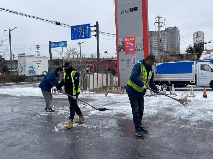 2月1日,連云港市普降大雪,氣溫隨大雪的襲來不斷降低,為防止道路結(jié)冰給客戶帶來不便。汽服公司安全處緊急啟動(dòng)防雪除冰應(yīng)急預(yù)案,對(duì)所屬場(chǎng)地的積雪進(jìn)行清掃。