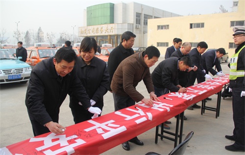 啟動儀式結(jié)束后,與會領(lǐng)導(dǎo)和出租車駕駛員集中開展了道路交通安全簽名儀式,大家決心用實際行動做好春運安全管理工作,共同攜手打好春運“安全行車、文明出行”這場攻堅戰(zhàn)。