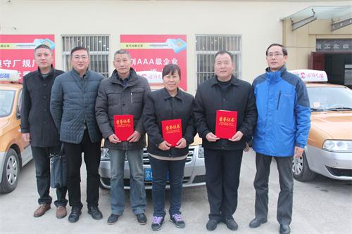 12月8日,連云港市運(yùn)輸管理處黨委書記、處長李永春蒞臨連汽出租公司,為公司“雷鋒的士”車隊邱永軍、錢明霞、韋號方三名隊員頒發(fā)了全市港城“十大最美的哥(的姐)”榮譽(yù)證書。李書記勉勵受到表彰的駕駛員珍惜榮譽(yù),再接再厲,立足崗位,為港城市民提供更加優(yōu)質(zhì)的服務(wù),為連云港市出租行業(yè)的繁榮發(fā)揮積極作用。