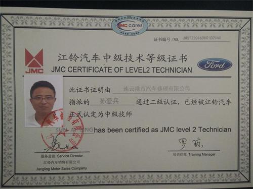 為提高修理公司高技能人才培養(yǎng),提升一次性修復(fù)率,減少客戶車輛待廠時間,4月6日-4月13日,汽服修理公司孫愛兵參加江鈴公司維修人員二級技師的培訓(xùn)并順利通過認證。