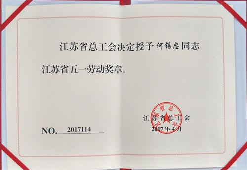 修理公司何錫忠同志被授予“江蘇省五一勞動(dòng)獎(jiǎng)?wù)隆睒s譽(yù)稱號(hào)