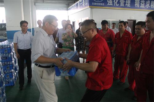 面對持續(xù)的高溫,交通控股集團(tuán)領(lǐng)導(dǎo)始終心系奮戰(zhàn)在一線的員工,720, 交通控股集團(tuán)黨委書記、董事長劉永能、總經(jīng)理、黨委副書記、副董事長仲偉濤、工會(huì)主席王中永及工會(huì)副主席張曉紅等一行人,來到汽車修理公司綜合維修車間,為車間高溫作業(yè)的修理人員送去了礦泉水等慰問品,在為修理人員送上清涼慰問同時(shí),集團(tuán)領(lǐng)導(dǎo)一行還向修理人員不畏高溫、堅(jiān)守崗位的辛勤工作表示感謝,并叮囑他們要把安全放在第一位,合理安排時(shí)間,注重勞逸結(jié)合。