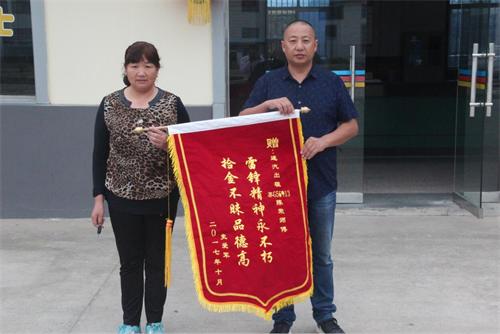 “感謝陳榮師傅拾金不昧,幫我挽回?fù)p失,謝謝!”遺落的手包失而復(fù)得,10月17日下午,失主史先生將一面“雷鋒精神永不朽,拾金不昧品德高”的錦旗送到連汽出租公司駕駛員陳榮手中,并向她連連致謝。